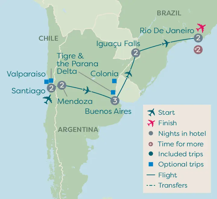 You'll be keen to get out in Rio this afternoon, whether that's to see more sights or stretch out on Copacabana Beach, which is just across from your hotel. There's also the option to take a cable-car ride to the top of Sugarloaf Mountain. This evening we'll gather as a group for a farewell dinner at a typical Brazilian Churrascaria. A churrascaria is a place where meat is cooked in churrasco style, which translates roughly from the Portuguese word for 'barbecue'. Experience the famous Brazilian barbecue and taste various types of meat including cuts of prime beef, ostrich, lamb, and wild boar.