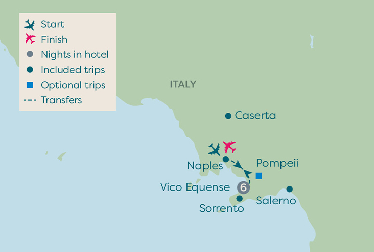 Your base for this festive holiday is the lively resort of Sorrento on the Sorrento Peninsula. You'll have plenty of time to explore Sorrento and an optional excursion could take you to the ruined city of Pompeii for a fascinating guided tour. On Christmas Day you'll enjoy a traditional festive lunch before experiencing Salerno's magical Luci D'Artista, a fabulous display of art. Spend Boxing Day in Caserta, where you'll discover the magnificent Royal Palace of Caserta.