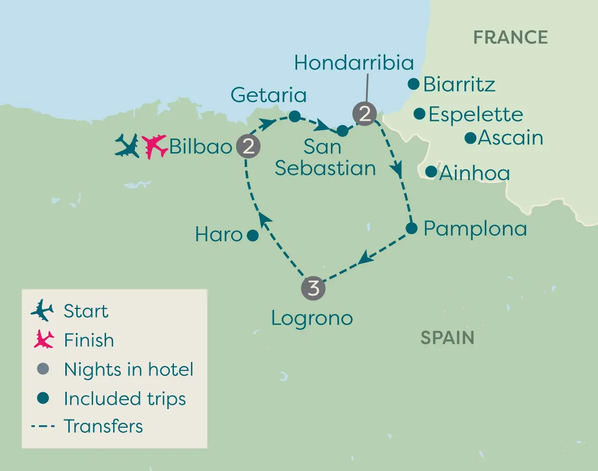 Enjoy one last Spanish breakfast as you reflect on a trip filled with history, exceptional flavours, cultural discovery and the genuine warmth of the Basque people, before heading to the airport for your return journey to the UK.