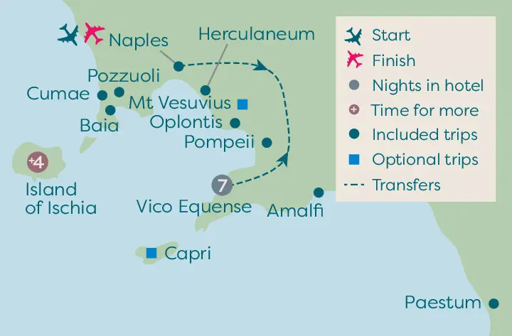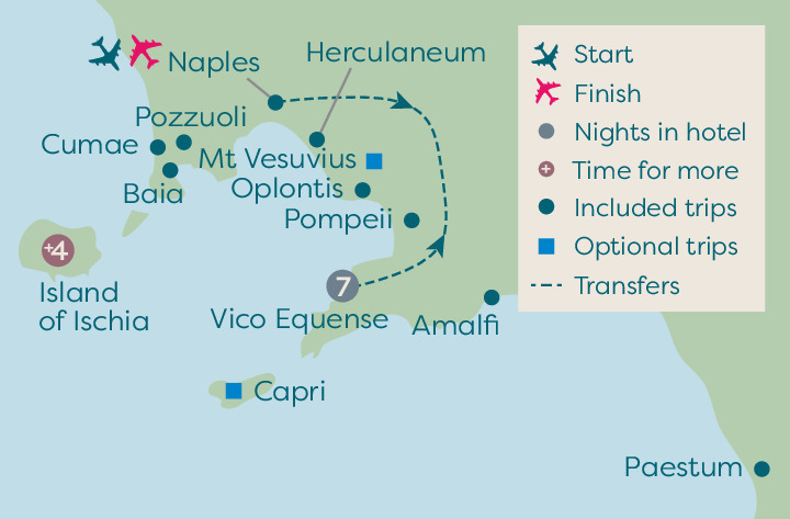 Your final stop today is Cumae, where only ruins remain of the Greek temples that once stood here. The atmospheric Cave of Sibyl and the Temple of Jupiter are two of the incredible sights you will see.