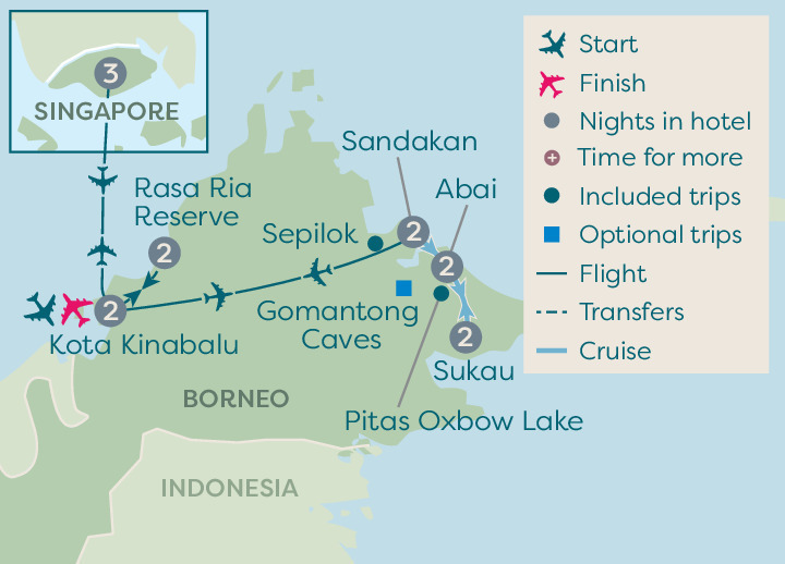 We’ve left this morning free for you enjoy the lodge and its surroundings. Stilted paths, up to 800 metres long, stretch into the forest, and animals often venture quite close. After lunch, our search for wildlife continues as we cruise upriver to our next destination, Sukau, for a two night stay. Along the way we'll look out for primates, in particular orangutans, as well as pygmy elephants and exotic birds. Some of the world's most spectacular species are resident in Borneo including kingfishers, hornbills and broadbills to name a few.